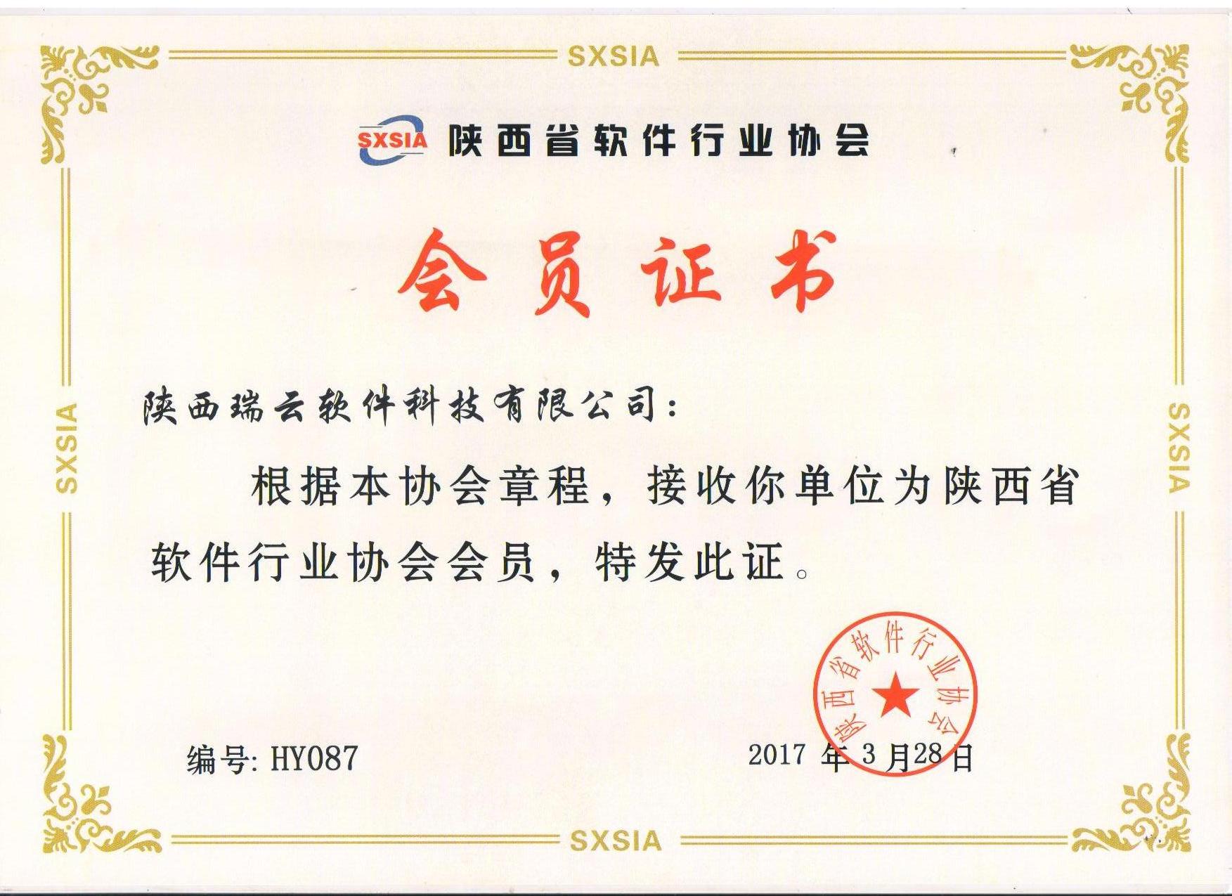 3月28日,瑞雲軟件通過陝西省軟件行(xíng)業協會嚴格資格審查,正式成為(wèi)陝西省軟件行(xíng)業協會會員。會員編号:HY087。